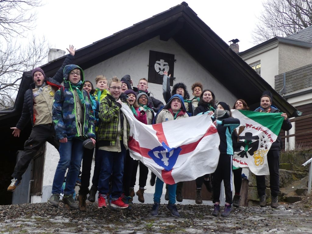 Am 8. Februar 2019 machten sich 10 Pfadfinder und 3 Gruppenleiter gegen Nachmittag auf den Weg zur Staffelberg Hütte, um am Wochenende sowohl die ältesten Pfadfinder offiziell aus dem Trupp zu verabschieden, als auch drei neue Pfadfinder aus der Jungpfadfinderstufe in der Gruppe zu begrüßen. Nach einigen Schwierigkeiten, schaffte es auch das Materialauto, den relativ steilen, teils vereisten Weg auf den Staffelberg zu erklimmen. Gemeinsam war das Gepäck schnell ausgeladen und in der kleinen, gemütlichen Hütte verräumt. Dann wurde erst einmal angeschürt und gekocht. Nach einem leckeren Abendessen ließen wir den Tag mit verschiedenen Brettspielen und einer Partie Werwolf ausklingen.